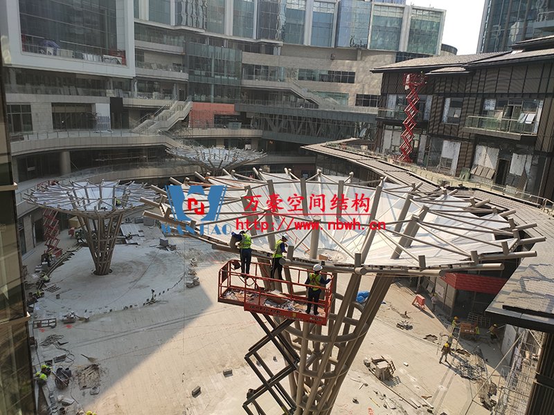 東南智匯城7#地塊傘狀ETFE膜結構工程位于河北省石家莊市東南智匯城,由寧波萬豪空間結構工程有限公司承建。
