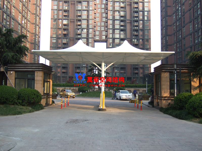 出入口膜結構建筑,指的是在建筑物的出入口搭建膜結構,起到遮陽擋雨的作用。例如收費站、小區門口、企業門口、地下車庫出入口等。