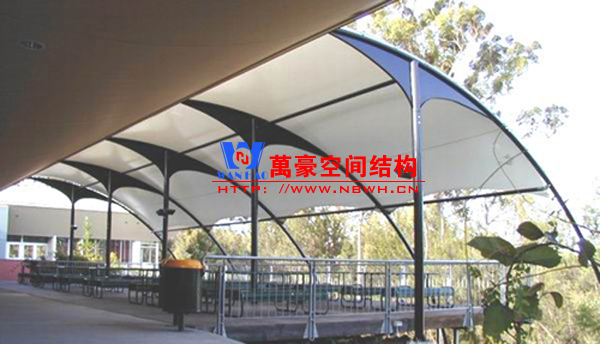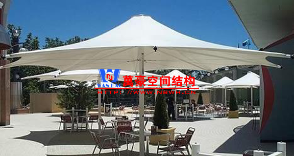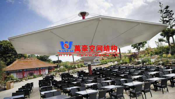 餐廳膜結構建筑主要包括戶外餐廳膜結構和室內餐廳膜結構。戶外餐廳膜結構形式多樣,有的是整個覆蓋在餐廳之上的膜結構,有的是覆蓋某片固定區域做為用餐區的膜結構,還有的采取一桌一頂棚的形式存在,主要功能是遮陽擋雨作用。室內餐廳膜結構建筑主要分為頂棚膜結構和裝飾膜結構兩種,主要起到裝飾作用,增加環境的美感。