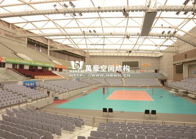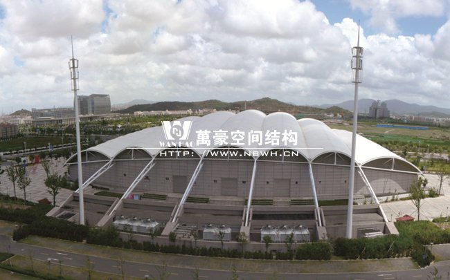 頂層膜結構分內外膜,外膜采用PTFE材料,水平投影面積約15000平方米,局部采用PVC內膜,覆蓋在比賽場地及觀眾席上方,工程整體結構造型美觀新穎,與周圍環境相融洽。為寧波市獨具景觀特色的標志性建筑。