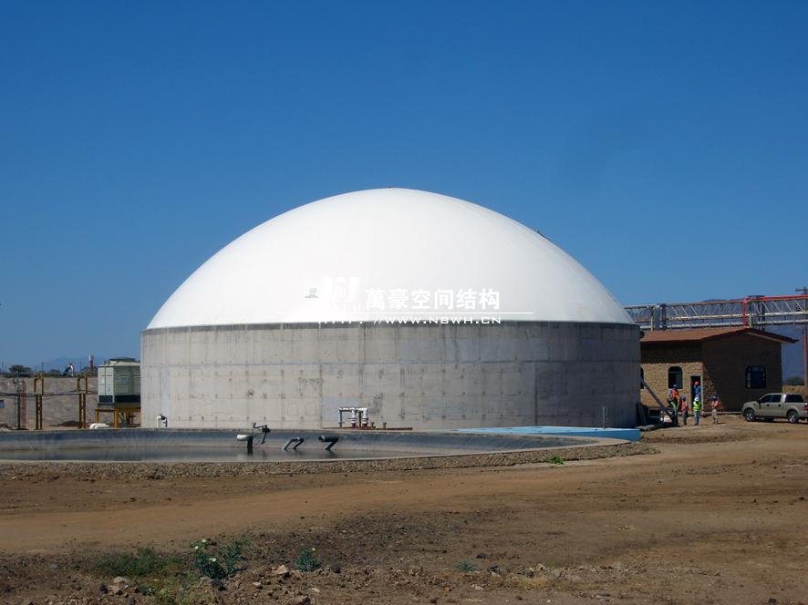 (2)適用于大跨度池體:膜材質輕,抗拉強度高,而且經過特殊光固化處理,對防腐、防菌、防霉變都十分優越,在大跨度的使用上具有優勢。