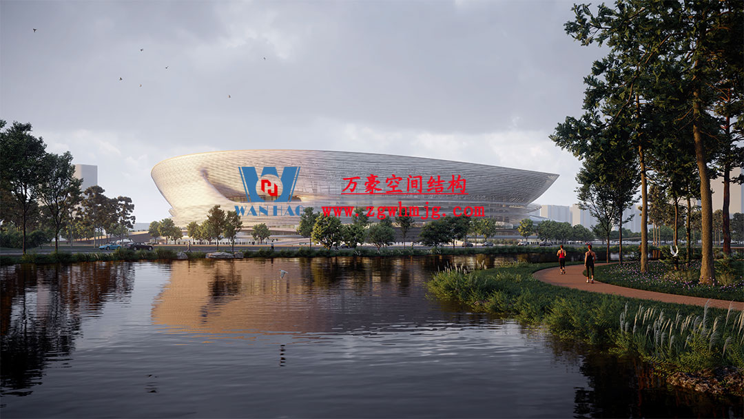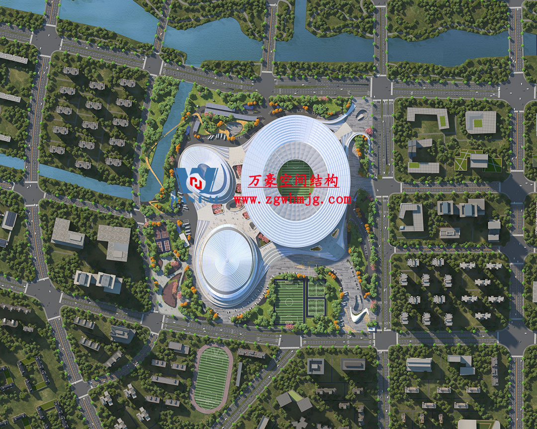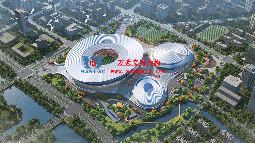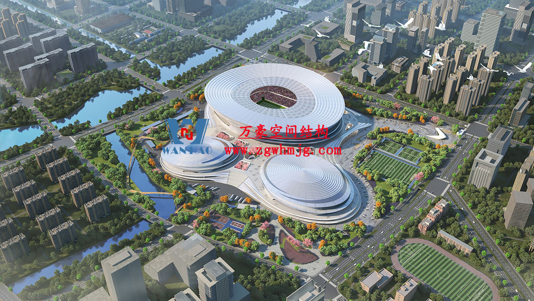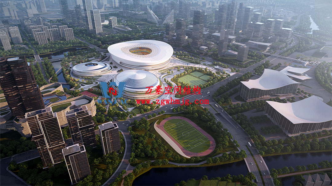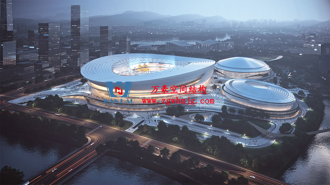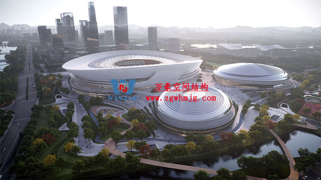 杭州余杭國際體育中心,位于浙江省杭州市余杭區杭州未來科技城.該項目二次鋼構用鋼量9000噸,PTFE膜展開面積40000平方米,是長三角最大覆殼式膜結構體育建筑。
