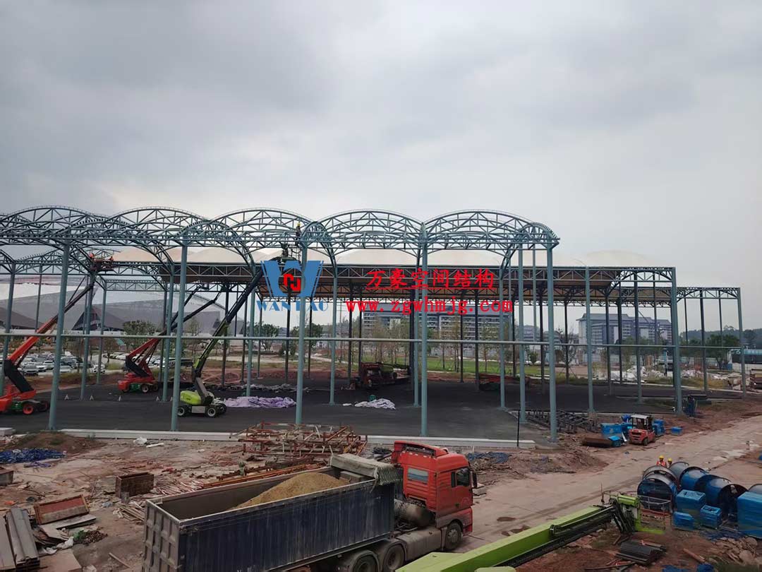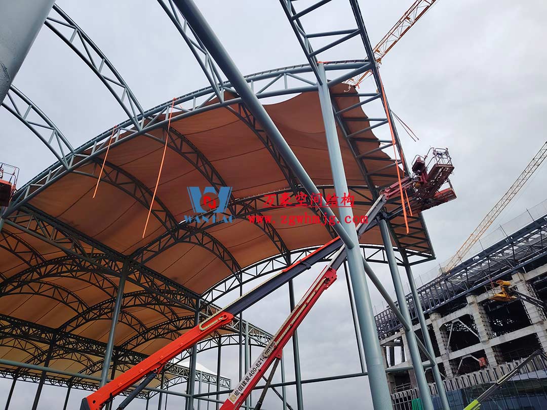 四川廣安共享體育場網球館膜結構位于廣安區官盛新區,是廣安共享體育場的一部分,PTFE膜結構展開面積5500平方米
