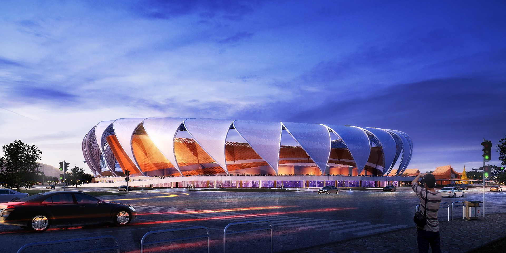 瑞麗國際文體中心建設項目體育場屋面膜結構工程位于云南省瑞麗市,該項目PTFE膜展開面積約36000平米。