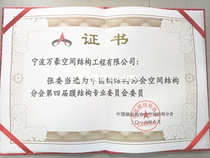 恭賀我司總經理張委當選膜結構專業委員會委員