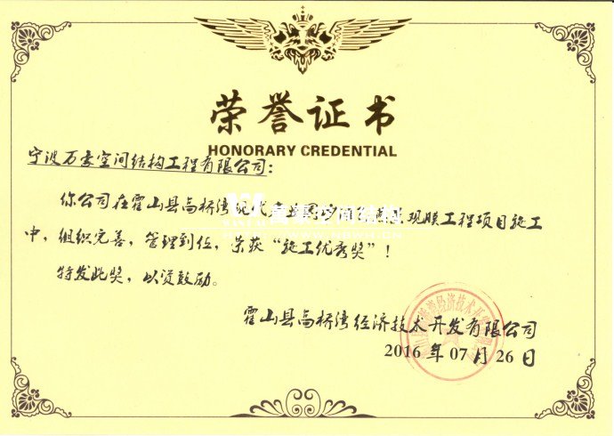 霍山縣飛燕景觀膜項(xiàng)目榮獲“施工優(yōu)秀獎(jiǎng)”