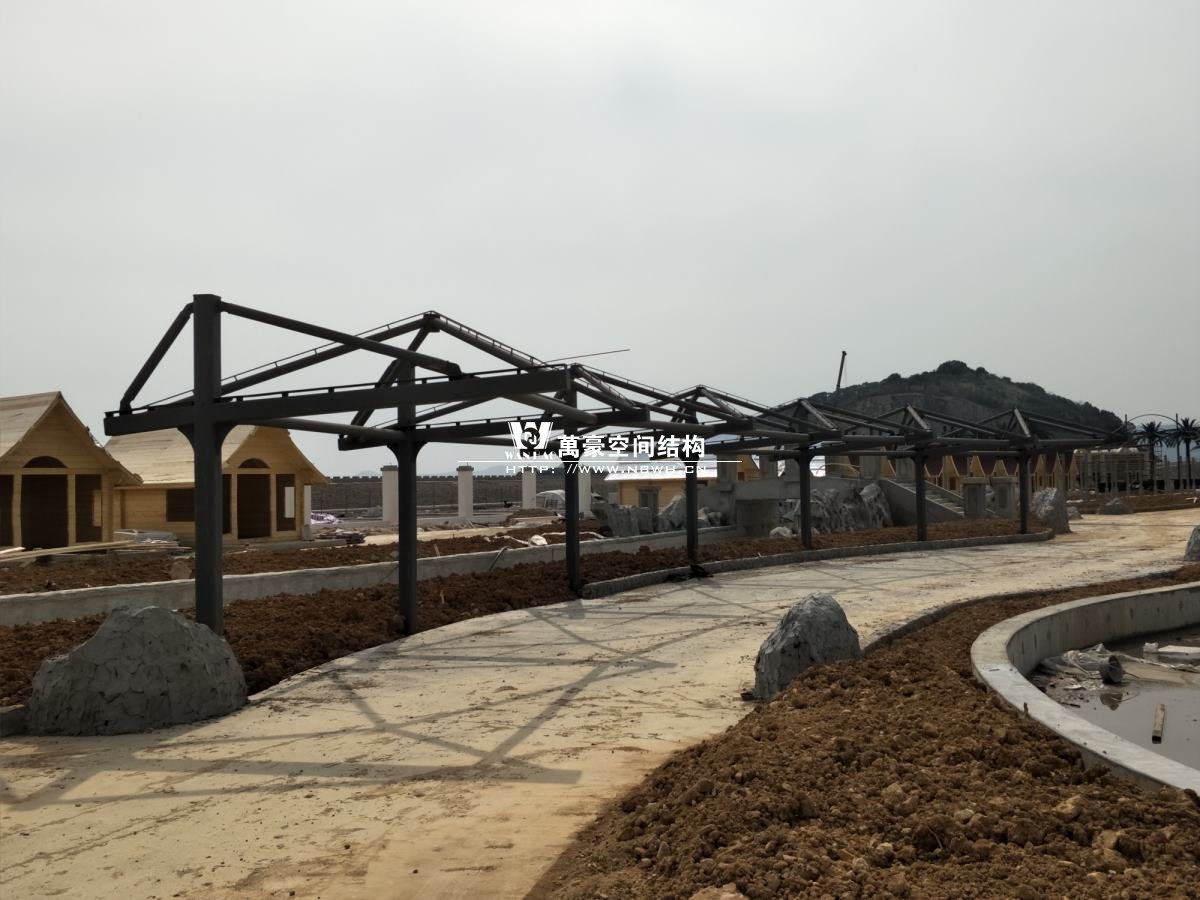 海闊天涳水世界鋼膜結構工程,由寧波萬豪空間結構工程有限公司承建。現場測量、深化設計、制作及安裝由寧波萬豪空間結構工程有限公司全權負責;用鋼量高達180噸,建筑面積達5000平米。