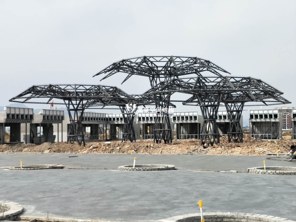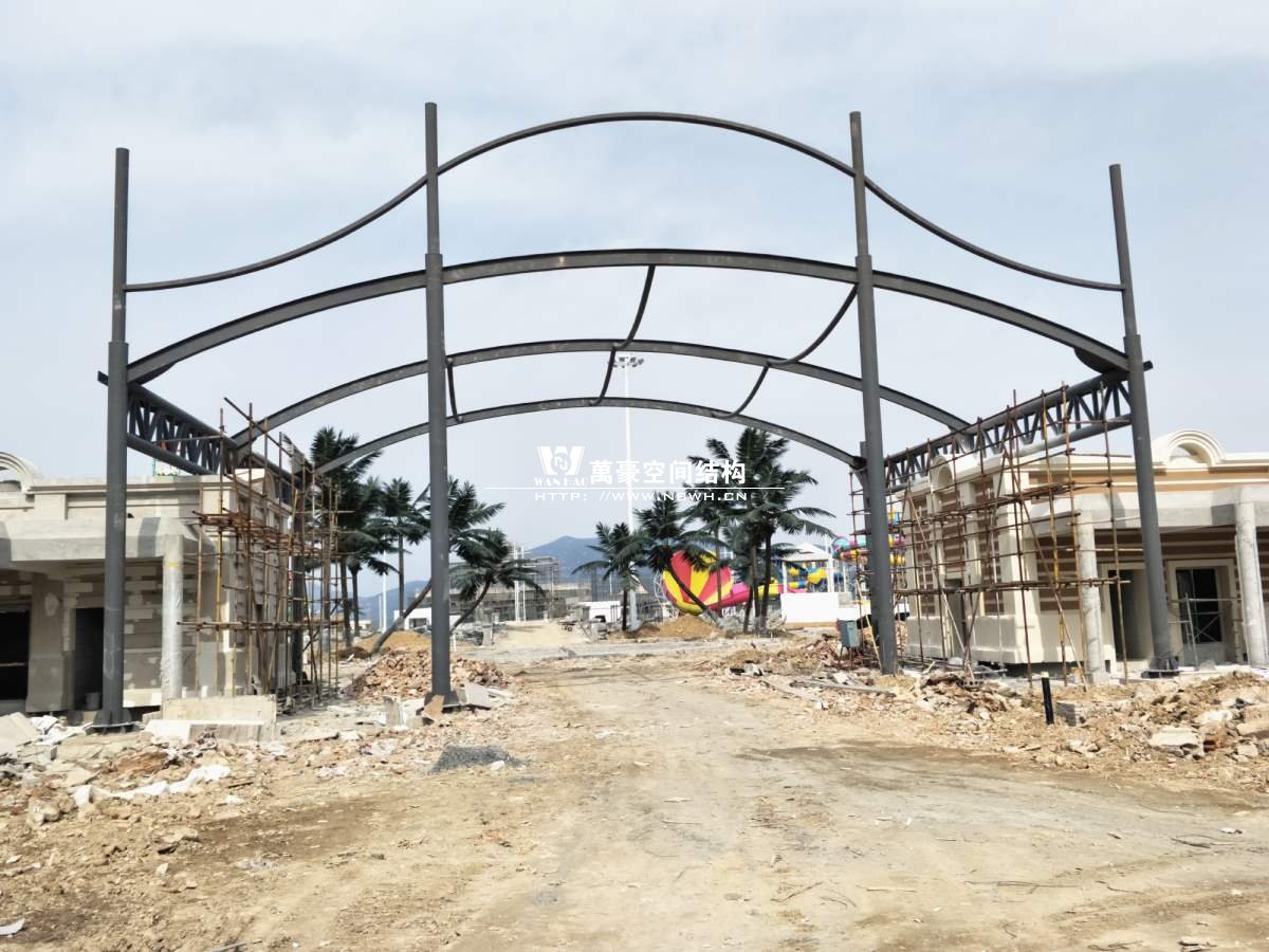 該圖片為項目大門,鋼梁單跨度達到22米,這么長的跨度我們對焊接質量和鋼材質量要求也是很高的,保證穩定性和安全性!